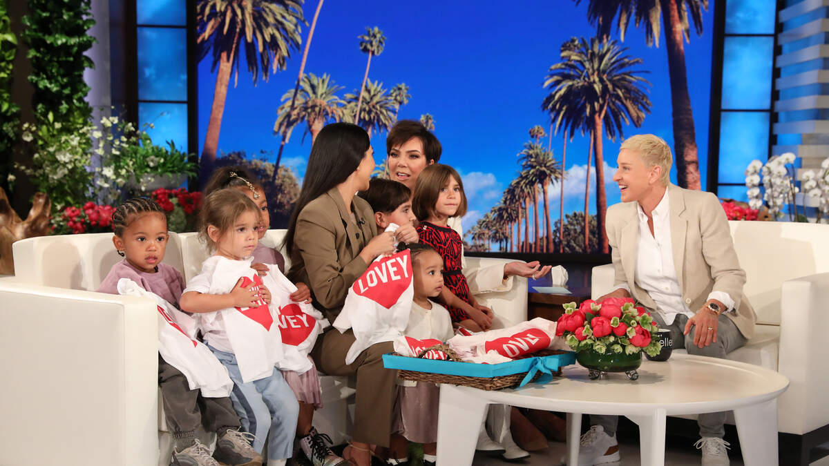Ellen DeGeneres surprised Kris Jenner with her eldest daughter Kourtney Kardashian, her three children, Mason, Penelope and Reign, along with Kim Kardashianâs kids, North, Saint and Chicago. As everyone is a little surprised why Kim was missing, Kourtney then reveals that her younger sisterâs surrogate is in labour with their son.