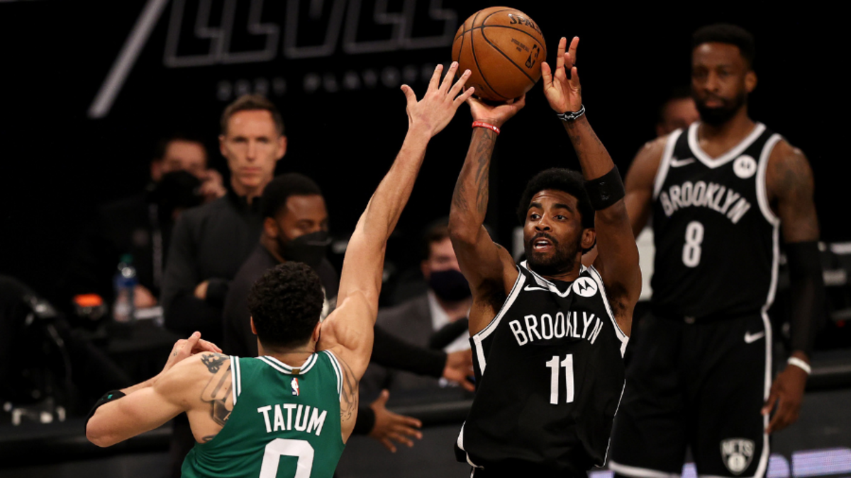 Kyrie Irving Gets Water Bottle Thrown On Him By Celtics Fan After Stepping On Logo.